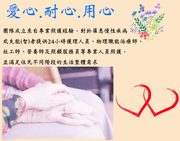因新冠肺炎及流感疫情仍延燒,有出國旅遊史及身體不適者請暫勿訪視。進入機構請配戴口罩、並以酒精洗手、減短在機構逗留時間。保護長輩健康安全,仰賴您共同維護,謝謝。